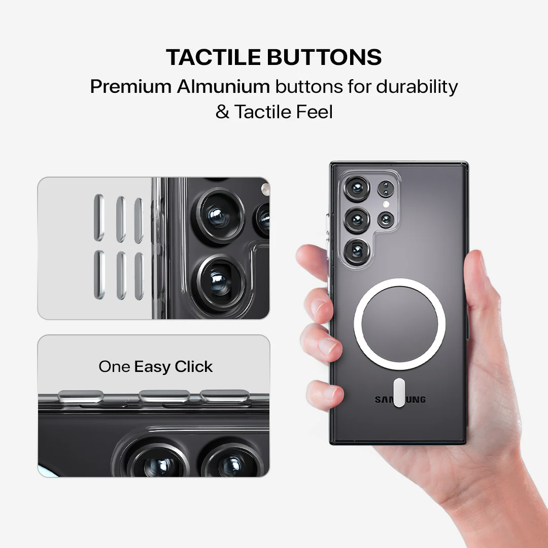 2) Built-in drop protection with Premium Almunium Buttons